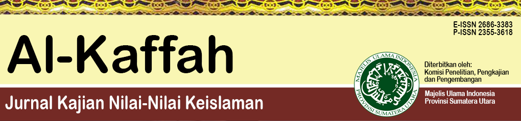 Jurnal Alkaffah: Jurnal Nilai-nilai Keislaman, diterbitkan oleh MUI Provinsi Sumatera Utara
